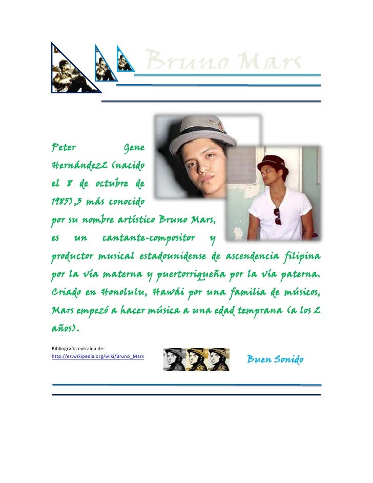 Letras De Canciones Y Informacion De Bruno Mars Bruno Mars