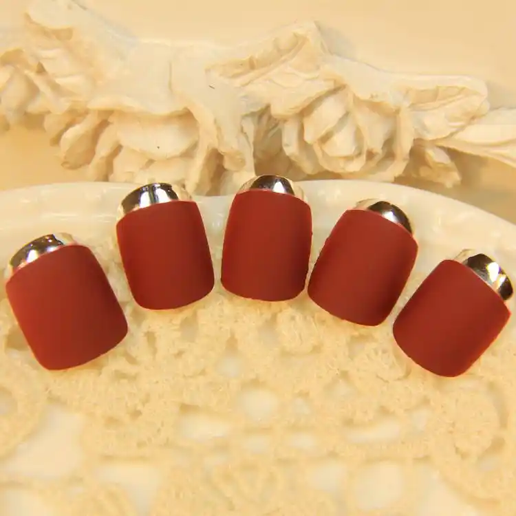 24pcs Short Full French Matte Nails Tips Red Color Moo Frosted