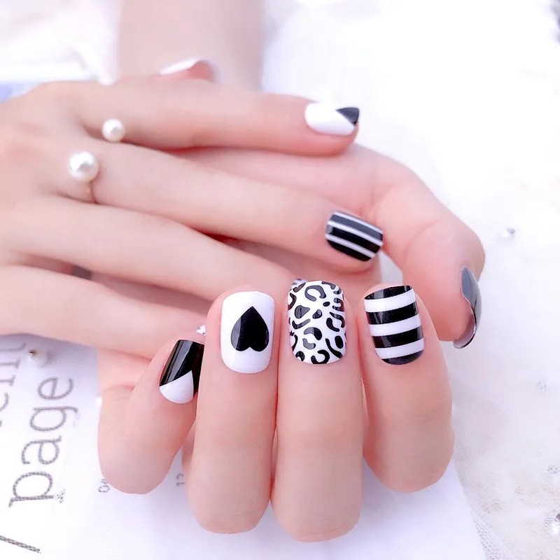 Printed Dots Fake Nail Stripe Heart Design Nail Art Manicure Tools