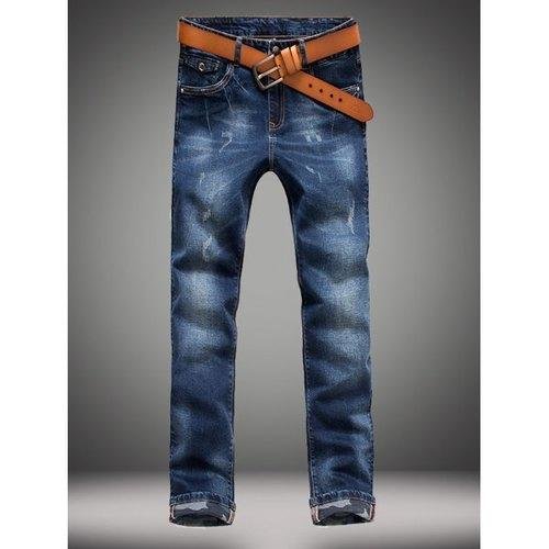 Fashionable Fitted Bleach Wash Simple Design Denim Pants For Men