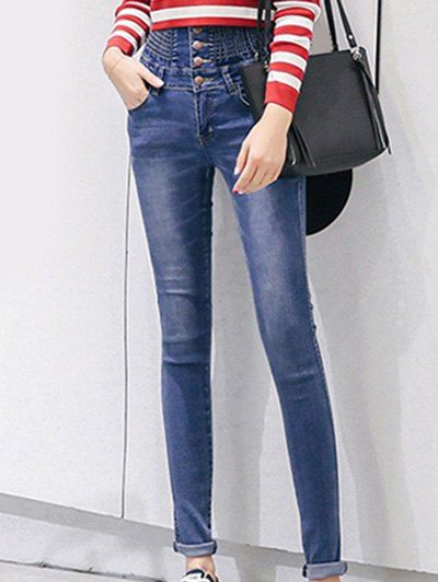 30 Off 2020 Bleach Wash Skinny Zipper Jeans In Denim Blue Zaful